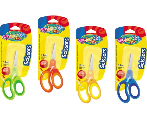 Зручні ножиці з коротким лезом для маленьких дітей. Гумові ручки. Дитячі ножиці для дитячого садка, школи та домашнього використання. Вони мають асиметричну ручку ергономічної форми з м’яким матеріалом, що підвищує комфорт використання. Контурна ручка ідеально лягає в маленькі ручки дитини Безпека використання підвищується завдяки округлим ковдрам.
