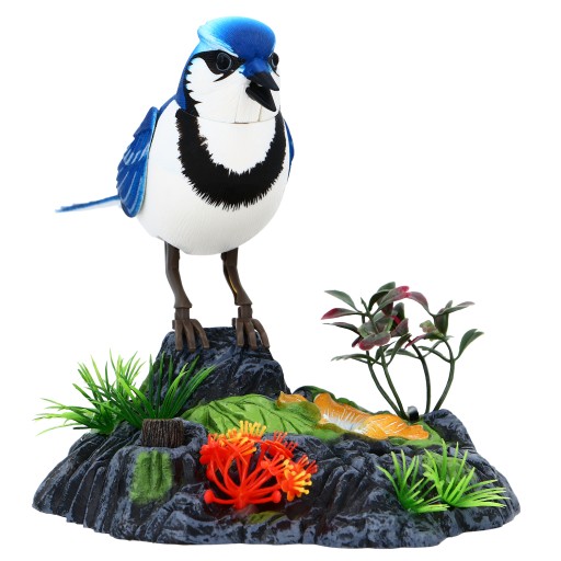 Пташка має рухливі елементи, такі як дзьоб або хвіст, реагує звуком - після натискання кнопки починає цвірінькати. Інтерактивна іграшка - звук також активується при реакції на шум або дотик.
