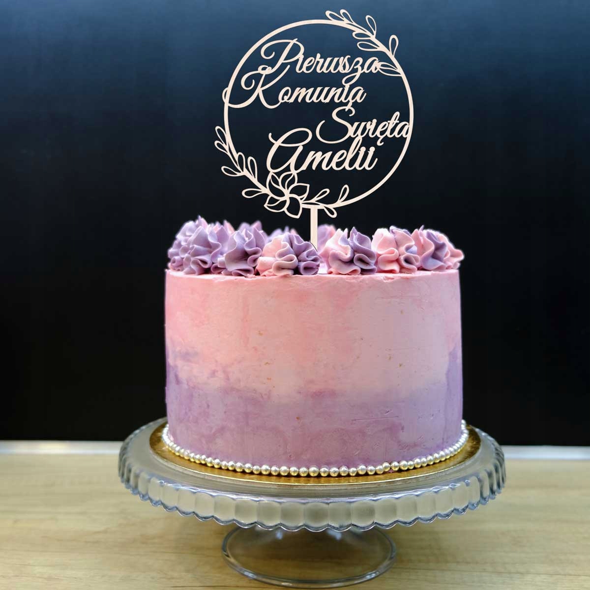 TOPPER I KOMUNIA ŚWIĘTA NAPIS NA TORT IMIĘ BIAŁY