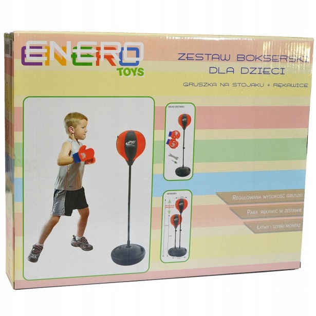 Przedstawiamy super zestaw bokserski Enero z regulacja wysokości w zakresie 80-102cm - to nie tylko świetna zabawa ale i trening który rozwija umiejętności każdego dziecka