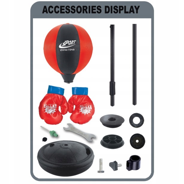 Zestaw zawiera parę dziecięcych rękawic bokserskich, aby chronić małe dłonie. Na stojaku teleskopowym znajduje się sprężyna. Każda część zestawu wykonana jest z trwałych materiałów, które dobrze utrzymują się w stanie zużycia.