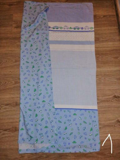 5) з маленькими синіми крапками, навколо овечки на синьо-білому картатому візерунку, з гудзиками, 90см х 123см,