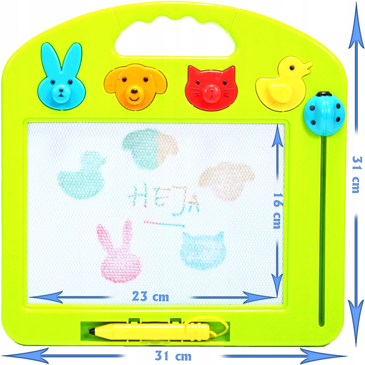 tablica do tworzenia rysunków z pisakiem i suwakiem w kształcie biedronki do wymazywania obrazków
