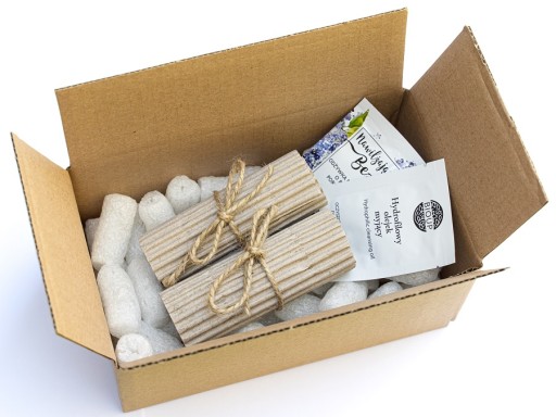 - безпечне відправлення в дусі меншої кількості відходів - ми надаємо великого значення тому, щоб замовлені продукти прибули неушкодженими. Для упаковки посилок використовуємо натуральні матеріали (картонні коробки, біорозкладний скребок, паперову стрічку). Без непотрібного пластику.