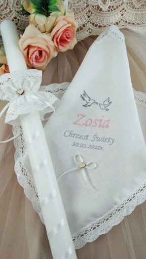 - свічказ високоякісного воску, довжиною 43 см, у формі витонченого конуса. Прикрашений білиматласна стрічка.