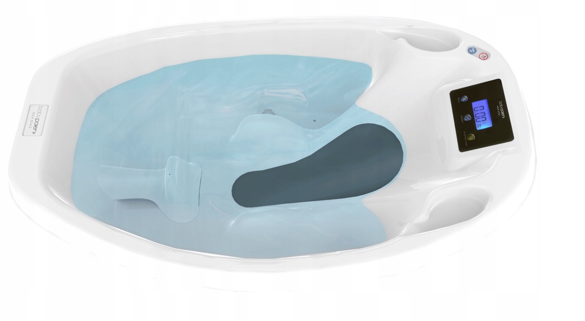 - Duży wyświetlacz LCD z odczytem wagi dziecka i temperatury wody