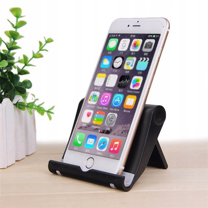 - Uniwersalny stojak / statyw na telefon i tablet z możliwością regulacji nachylenia. Uchwyt posiada specjalne łapki, dzięki czemu urządzenie nie ulegnie przesunięciu i nie wypadnie, a możliwość złożenia i niewielkie rozmiary, pozwalają zastosować uchwyt w każdym miejscu.