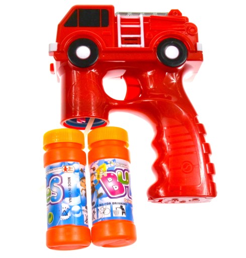 Безпроблемний пістолет для випуску мильних бульбашок, просто вкрутіть рідину, що входить в комплект, натиснувши на курок пістолета ми отримаємо магію сотень мильних бульбашок і додатково світлові ефекти і звуки справжньої пожежної команди.