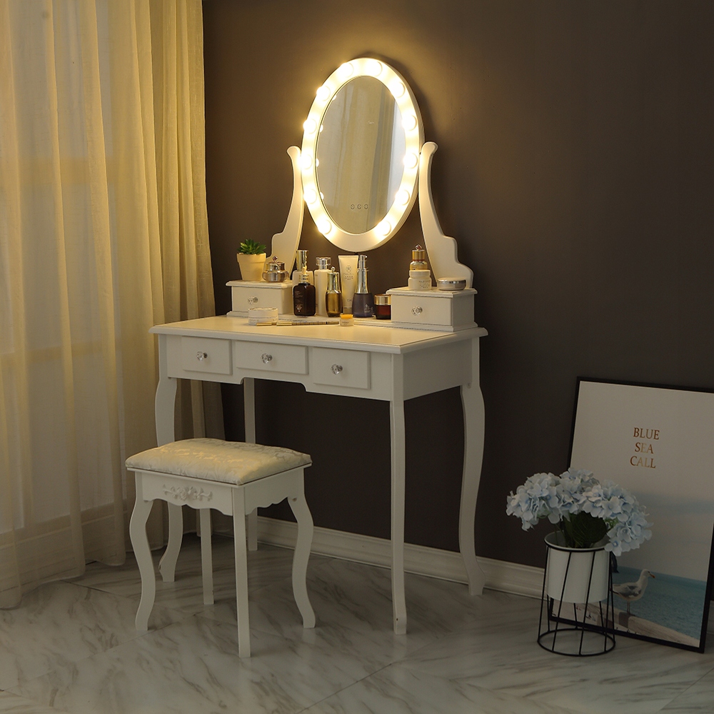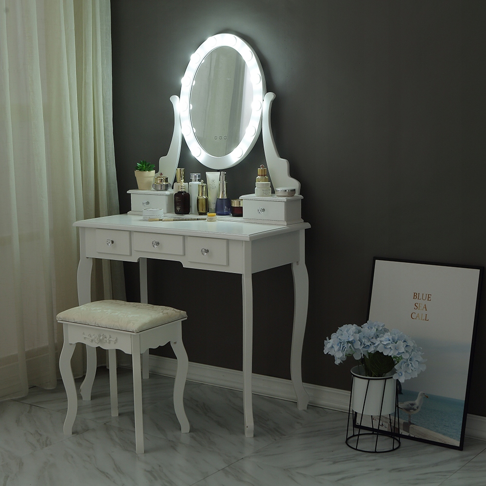 ТУАЛЕТНЫЙ столик и КОСМЕТИЧЕСКОЕ с ЗЕРКАЛОМ LED БЕЛЫЙ + ТАБУРЕТКА
