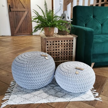 Pufa dziergana pleciona ze sznurka 45x30 KOLORY