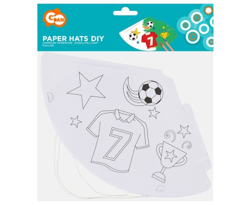 Паперові капелюхи, щоб діти самі розфарбовували. Ідеально підійде як подарунок вашій дитині. Ви можете використовувати їх для різних випадків. Шапки кріпляться за допомогою гумки. У набір входить 6 штук шапок.
