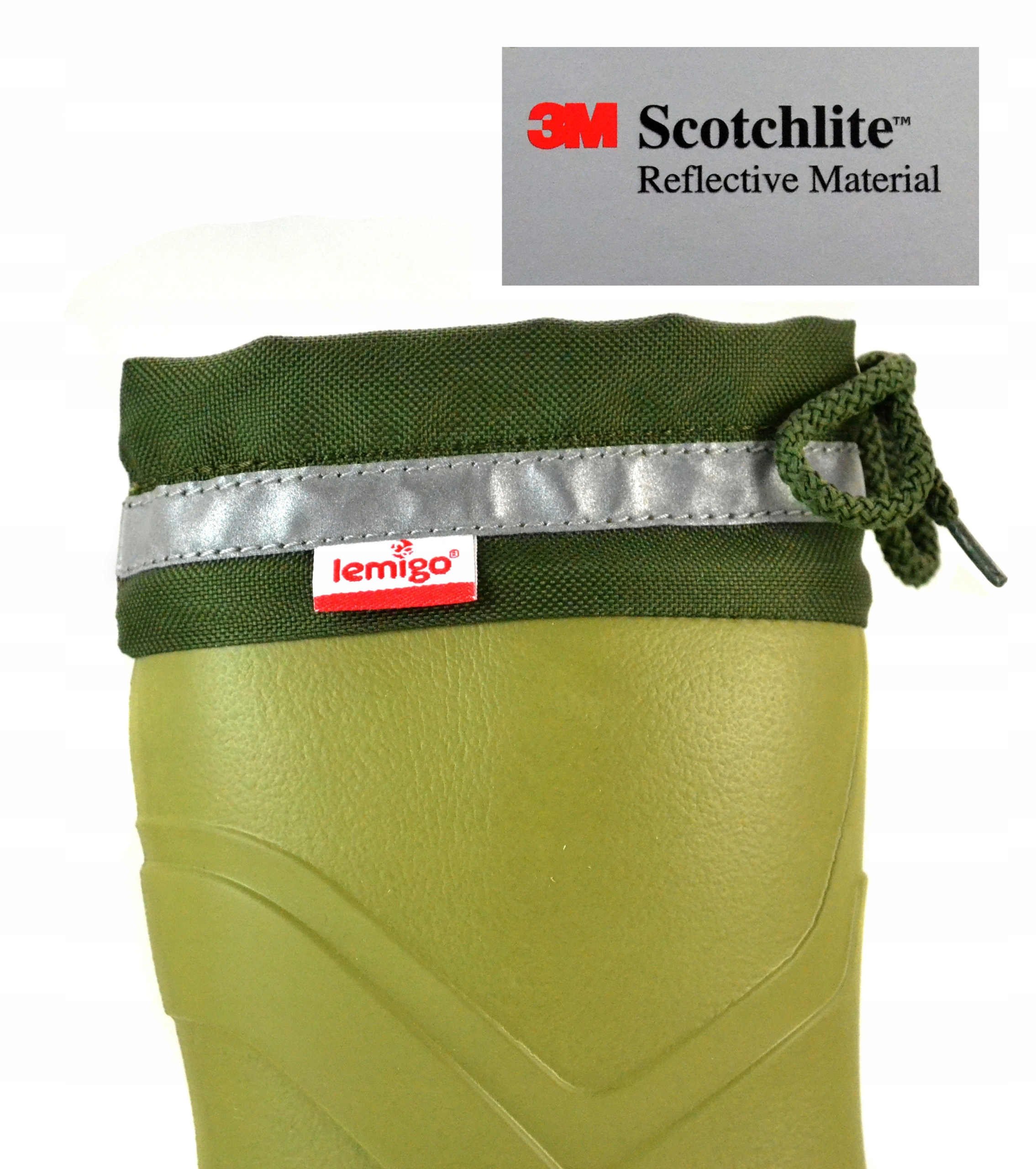 Specjalnie w trosce o bezpieczeństwo Państwa pociech kalosz został wykończony poliestrowym kołnierzem z taśmą odblaskową z firmy 3M, dzięki czemu nawet przy mglistej pogodzie, czy słabej widoczności Państwa Dzieci będą widoczne ze znacznie większej odległości.