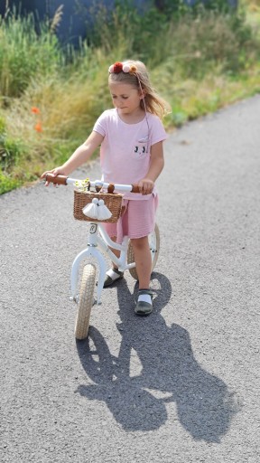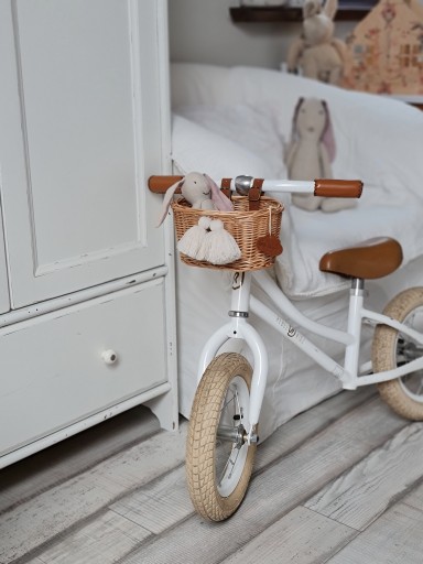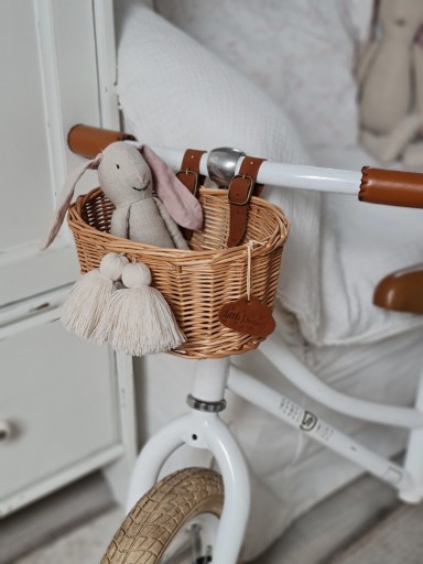 Красива кошик для велосипеда з лози, з ремінцями для кріплення з натуральної шкіри. Для найнеобхідніших скарбів маленького мандрівника.