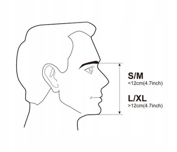 Jeżeli jest mniejsza bądź równa wartości 12 cm wybieramy maskę S/M, jeżeli więcej niż 12 cm wybieramy maskę L/XL