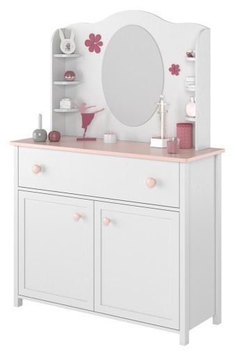 Колекція LUNA ідеально підходить для облаштування кімнати як маленької дівчинки, так і підлітка. Класичні білі форми з тонкими елементами пудрового червоного кольору порадують своїх користувачів універсальним стилем і функціональністю. Романтичний характер меблів підкреслює хвилеподібна обробка.