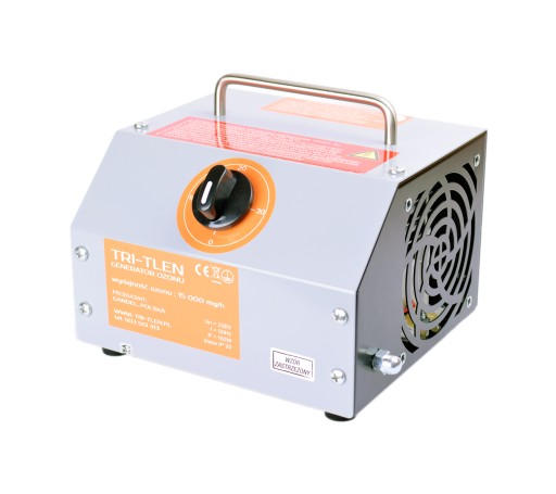 Апарат TRI-OXYGEN TR-15 - генератор озону (озонатор) з високою продуктивністю до 15 000 мг/год. Завдяки своїм невеликим розмірам це дуже універсальний інструмент для озонування приміщень. Оснащений таймером, який дозволяє легко встановити час, на який має бути включено озонування. Ми можемо вибрати від 0 до 30 хвилин. Про закінчення роботи озонатор TR-10 повідомить коротким звуковим сигналом.