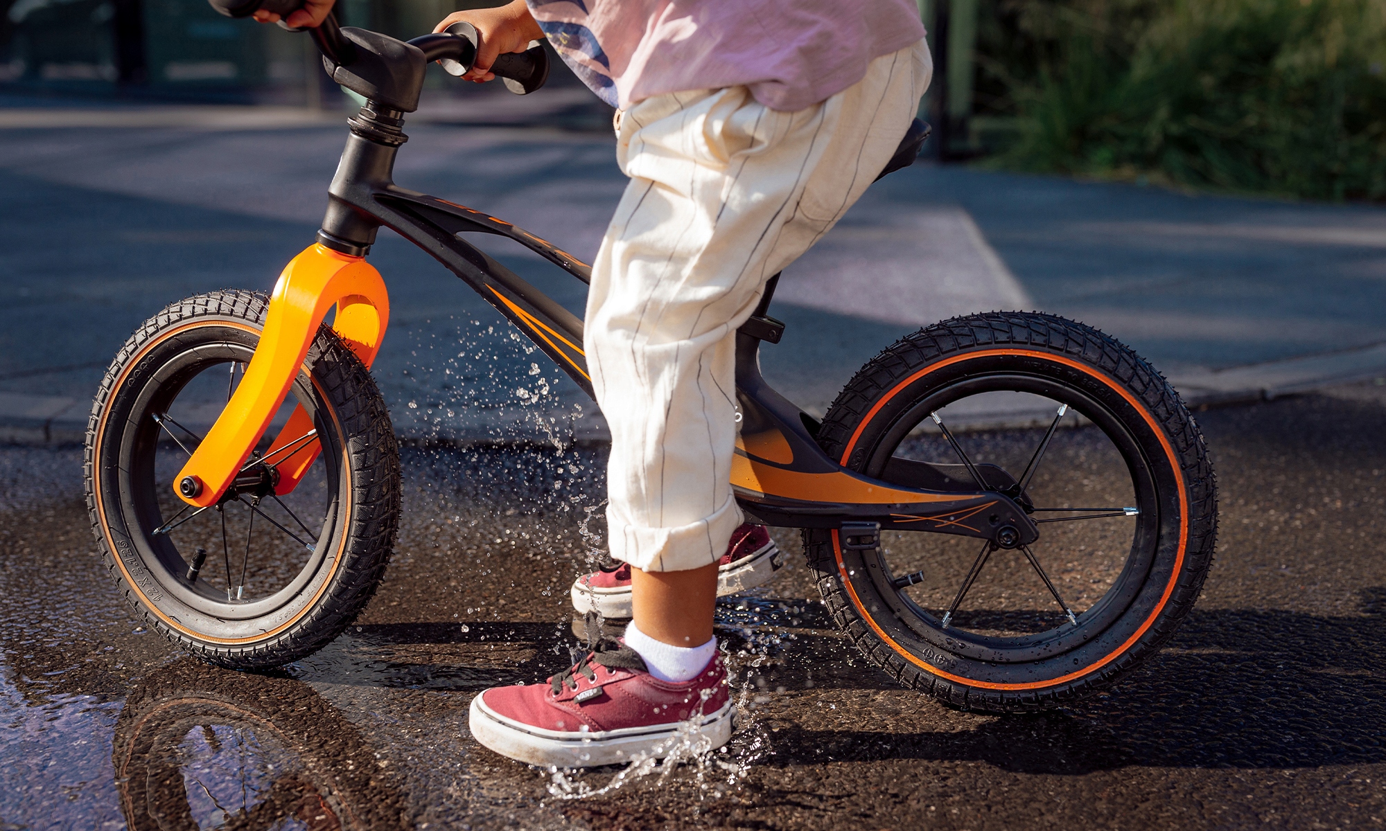 ✔ Bieżnik poprawia przyczepność podczas jazdy oraz znacznie redukuje wagę rowerka względem pojazdów z pompowanymi kołami