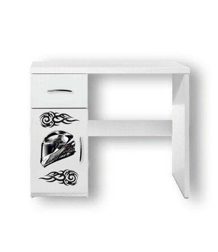 Стіл виготовлений з меблевої плити МДФ білого кольору, оздоблений шпоном ABS. Він має функціональну шухляду та дверцята з можливістю друку малюнка на ваш вибір.