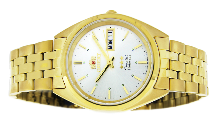 Męski zegarek Orient wykonany ze stali szlachetnej w złotym kolorze, z automatycznym mechanizmem.