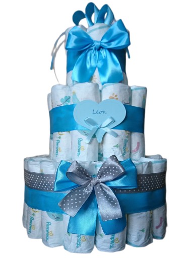 Такий торт з підгузників памперс – ідеальний подарунок – він порадує Малюка і подарує задоволення Батькам.