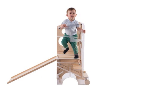 Навчальна вежа Leea - це якісний багатофункціональний продукт. Його можна використовувати як т. зв «Кухонний помічник», як дитячий стільчик, як столик зі стільчиком і як дитячий ігровий центр.