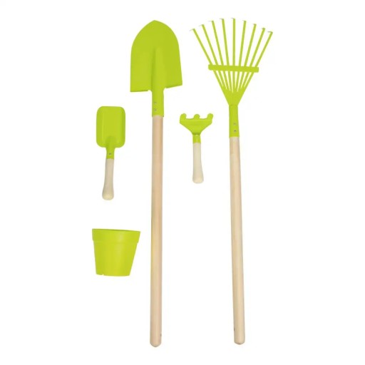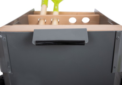 Весь комплект візка садового Small Foot адаптований для роботи як в саду, так і на ділянці. Діти в ролі садівників допоможуть дорослим, а вся родина зможе насолоджуватися разом проведеним часом. Виготовлений з деревини бука та металу, візок оснащений великою лопатою та граблями, а також невеликим набором для чищення. Зелений пластиковий горщик чудово підійде для посадки в нього молодої рослини. Крім того, для кращої безпеки ніжка була оброблена гумою, а завдяки своїй маневреності нею легко керувати.