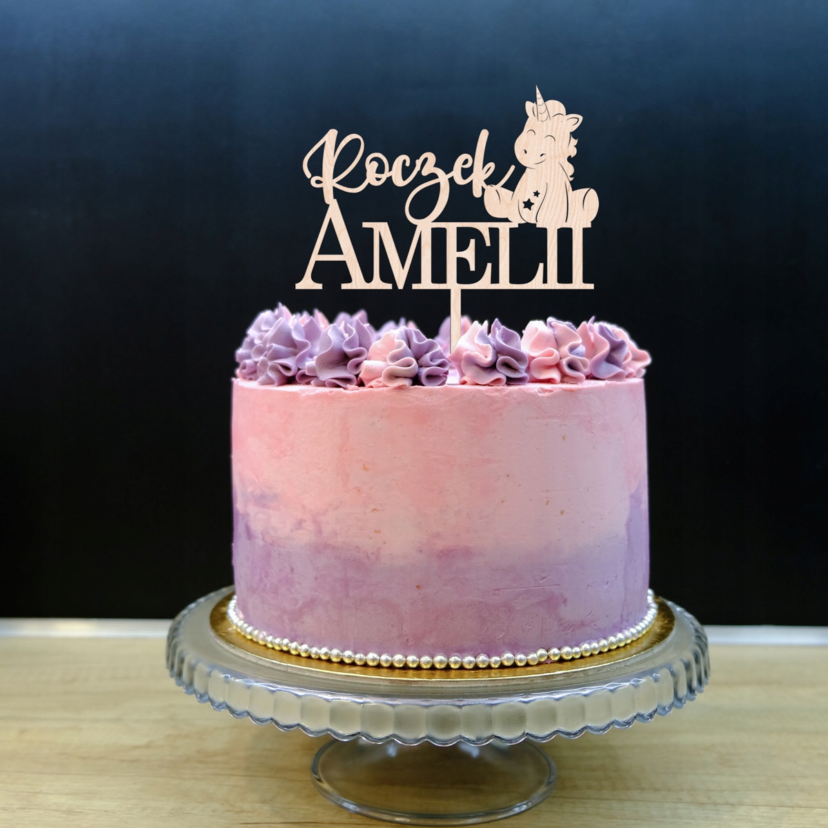 Topper na tort - Jednorożec - roczek + dowolne imię