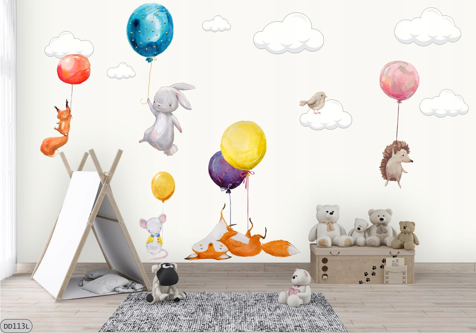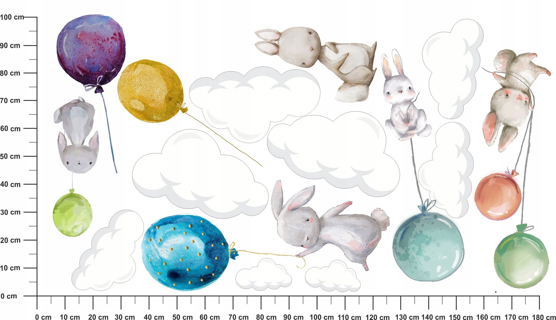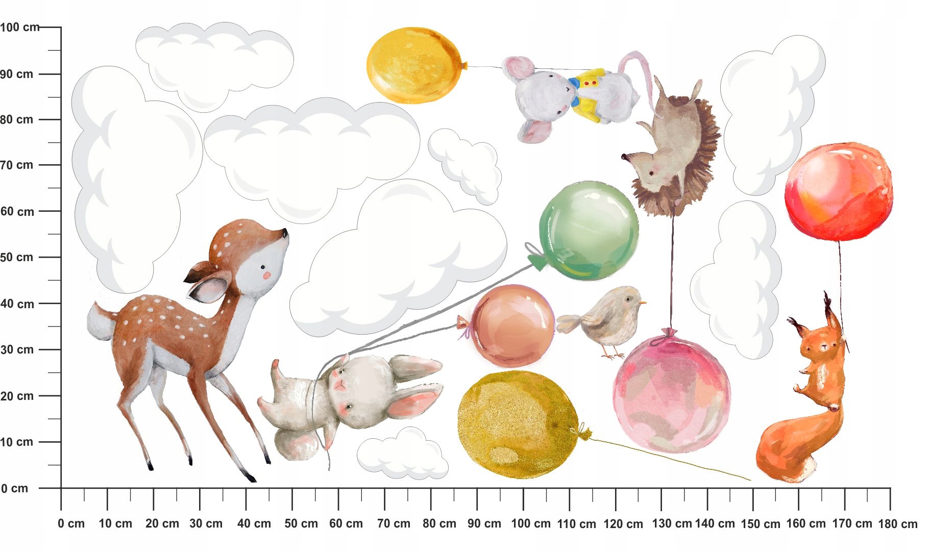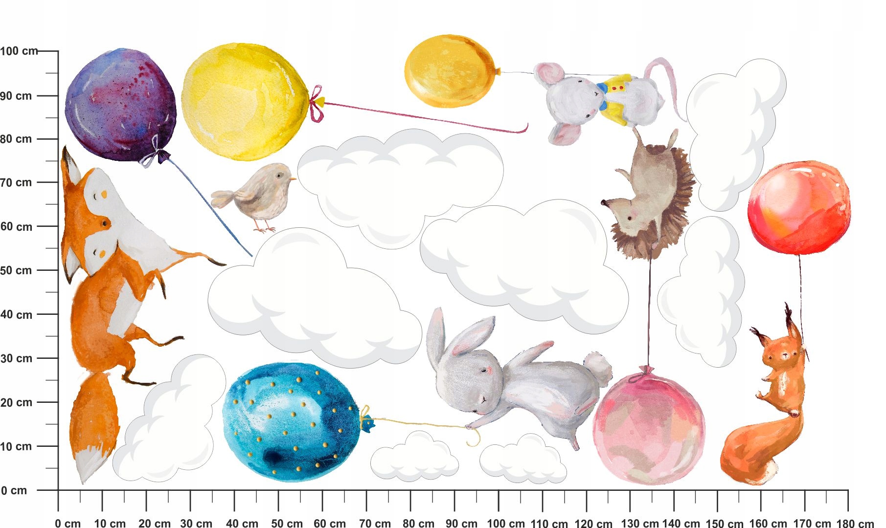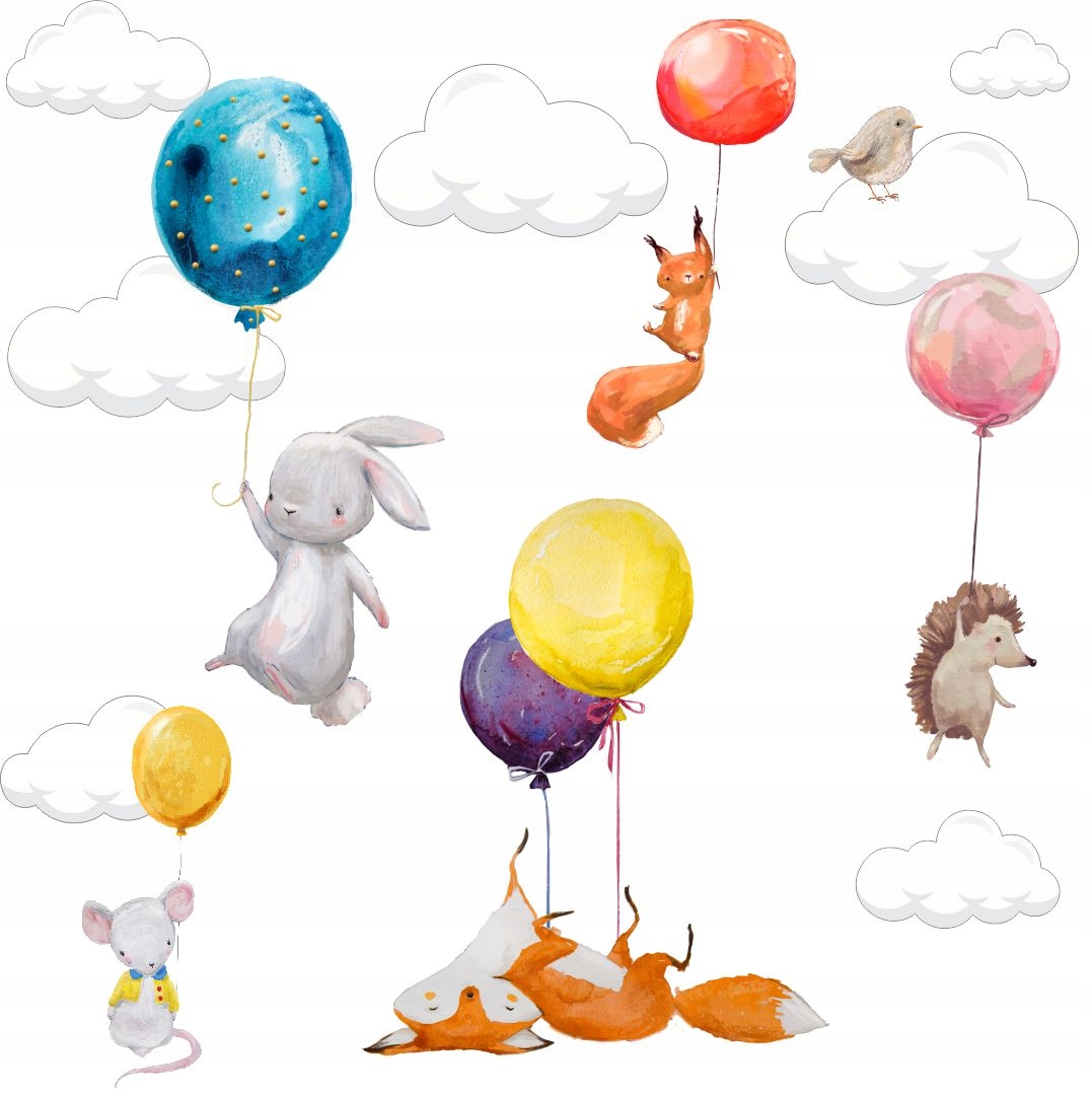 ЖИВОТНЫЕ, воздушные ШАРЫ, ОБЛАКА НАКЛЕЙКИ НА ŚCIANĘ180x100