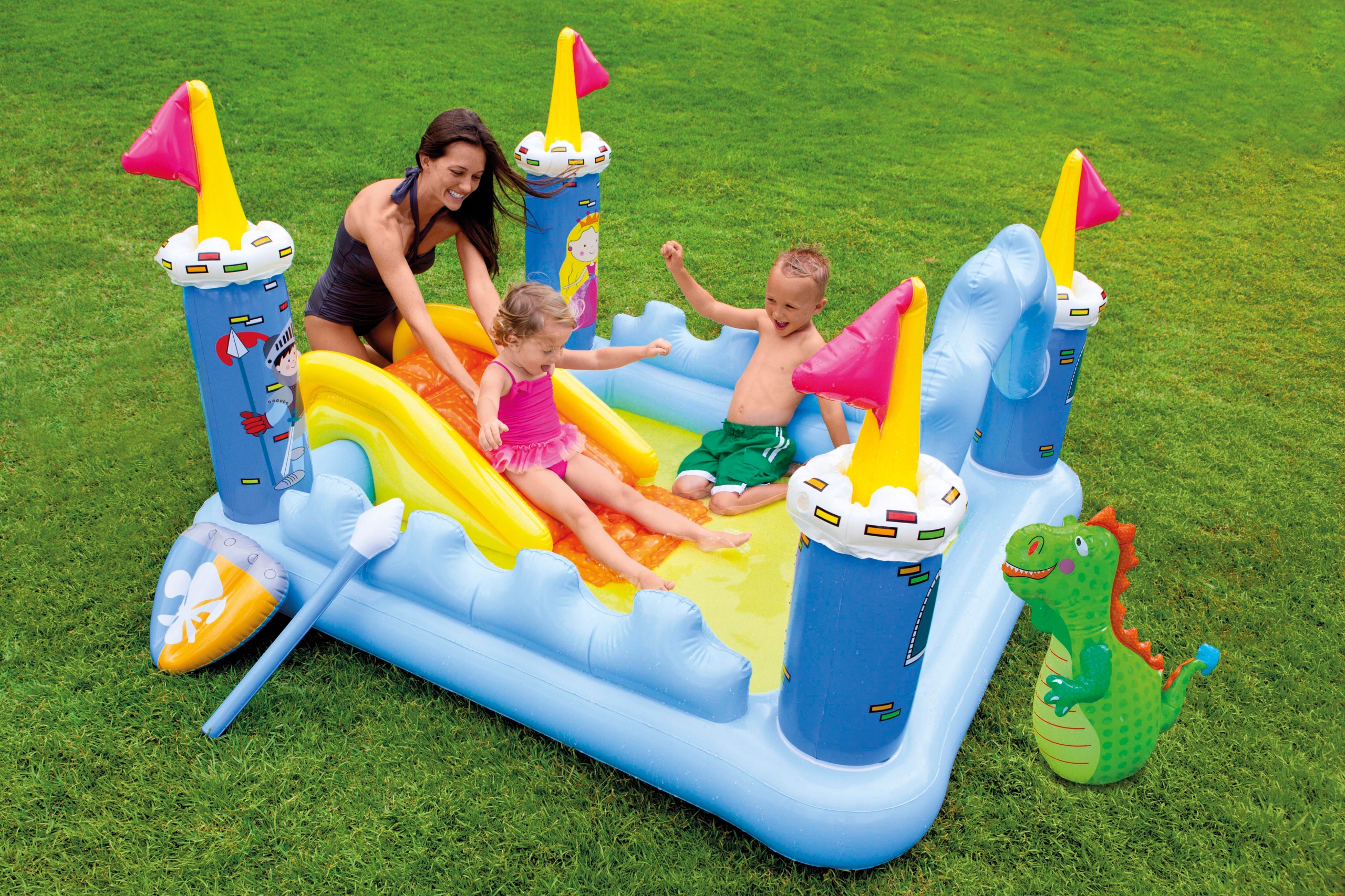 Stwórz dla swoich dzieci centrum rozrywki we własnym ogrodzie. Zostań prawdziwym rycerzem oraz broń księżniczki! Wodny plac zabaw Intex Zamek Fantasy Smok dostarczy Twoim dzieciom wielu przygód i radości. Dzięki ciekawym dodatkom zabawy nie będzie końca.