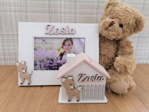Дерев'яна розписана вручну скарбничка у формі будиночка стане чудовим подарунком для кожної дитини на різні свята. На передній частині скарбнички горщик і декор, розписаний вручну. У грі на видному місці дерев'яний напис з ім'ям дитини.