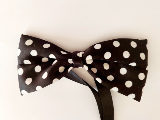 Чорний оксамитовий краватка-метелик у білий горошок.