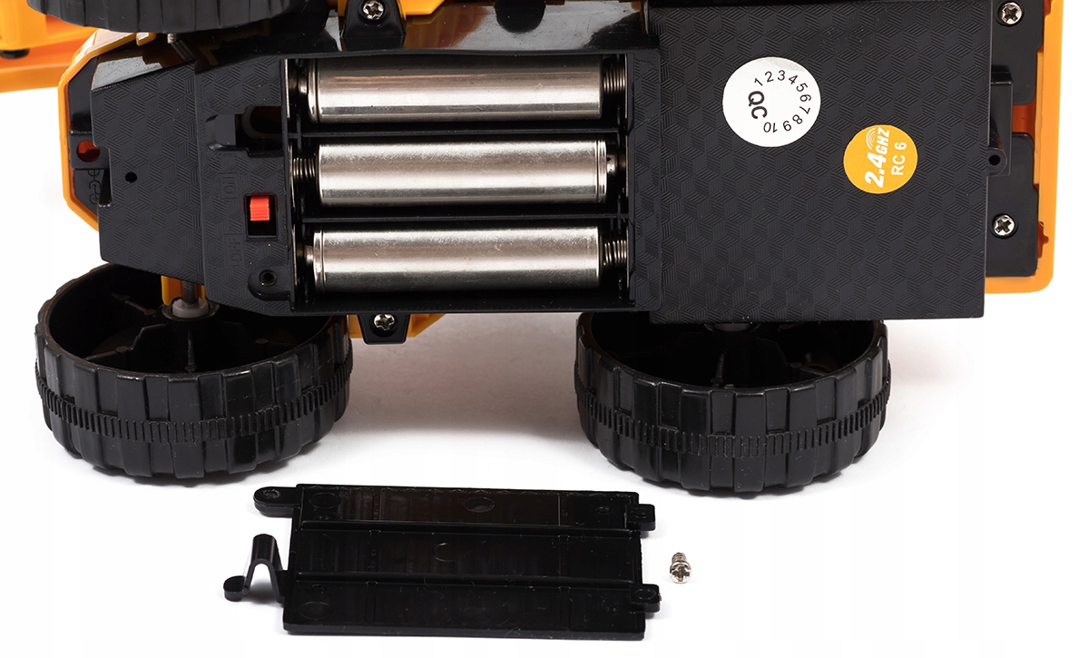 Wywrotka zasilana jest 3 sztukami baterii AA 1,5V, natomiast pilot 2 sztukami, które nie są dołączone do zestawu. Wszelkie elementy zostały zaprojektowane z myślą o najmłodszych użytkownikach, przez co do ich produkcji użyto atestowanych materiałów najwyższej jakości.
