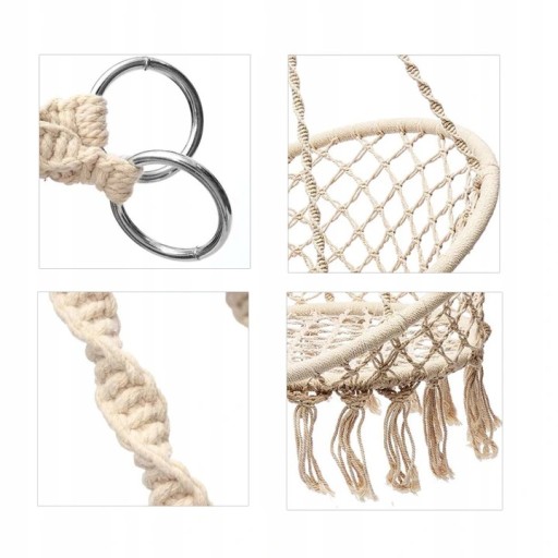 гойдалкаВороняче гніздовиготовлена з суцільної струни (подвійного плетіння) і металевого обода, що гарантує безпеку і комфорт гри. Має унікальний вигляд павутини, завдяки чому виглядає чудово. Це ідеальна ідея для розваги для дітей.
