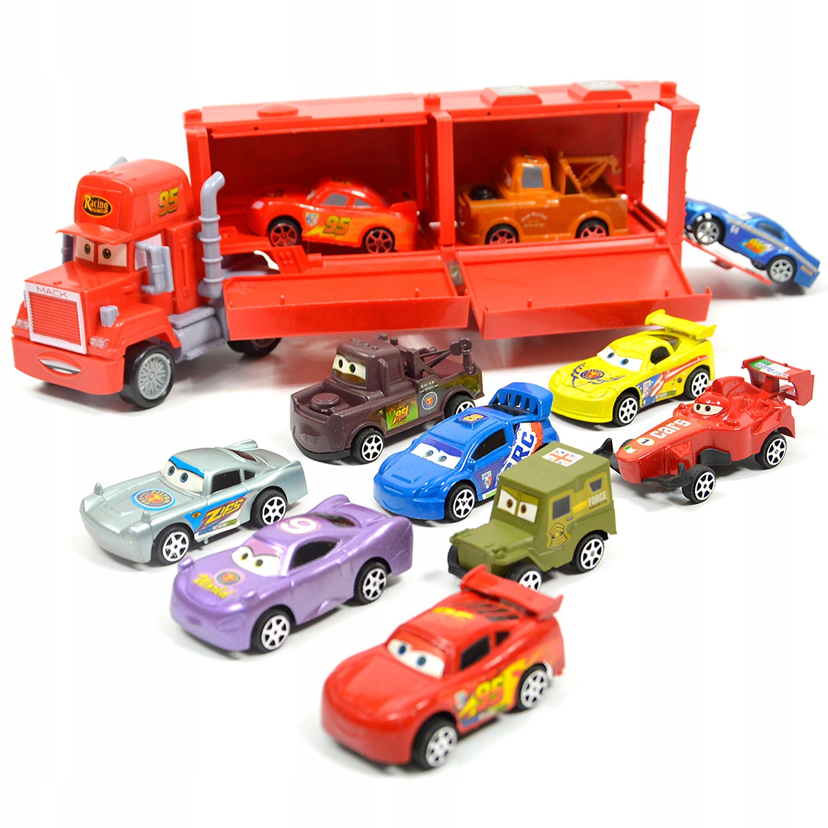 Zestaw zawiera pojazd, ciężarówkę z kontenerem o długości 50 cm, która może służyć jako laweta dla aż 10 samochodzików które znajdziemy w zestawie.