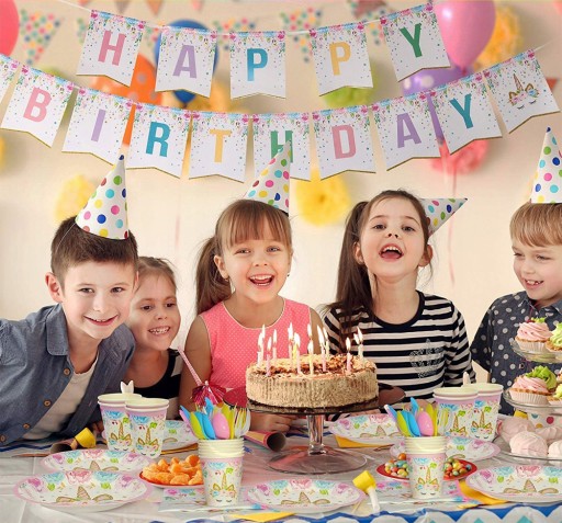- Серветки, соломинки, скатертини, банери, повітряні кульки, свічки та багато інших аксесуарів з Єдинорогом...