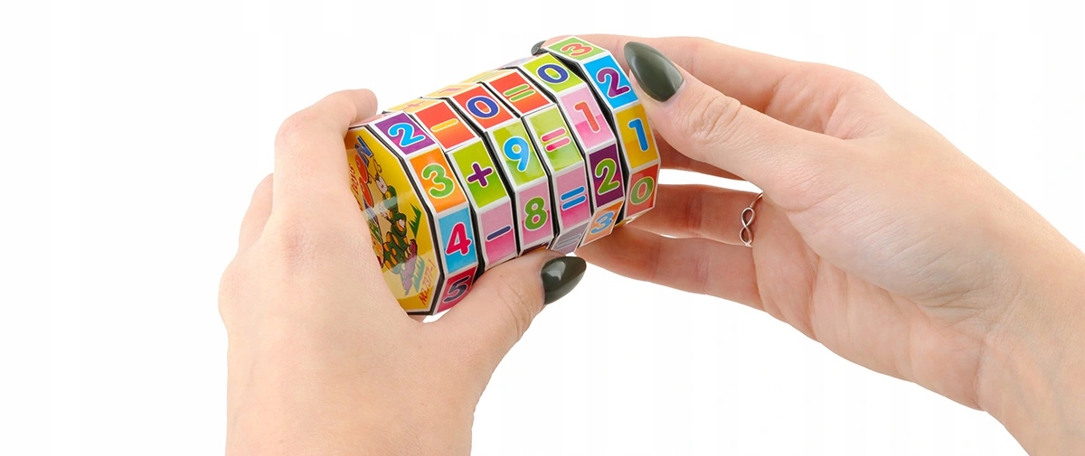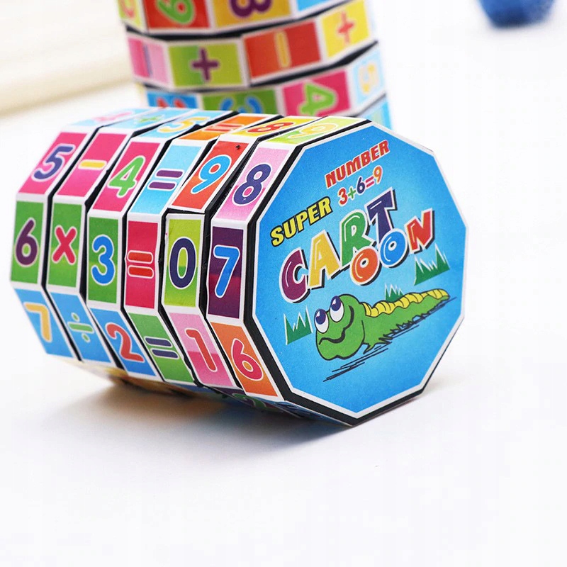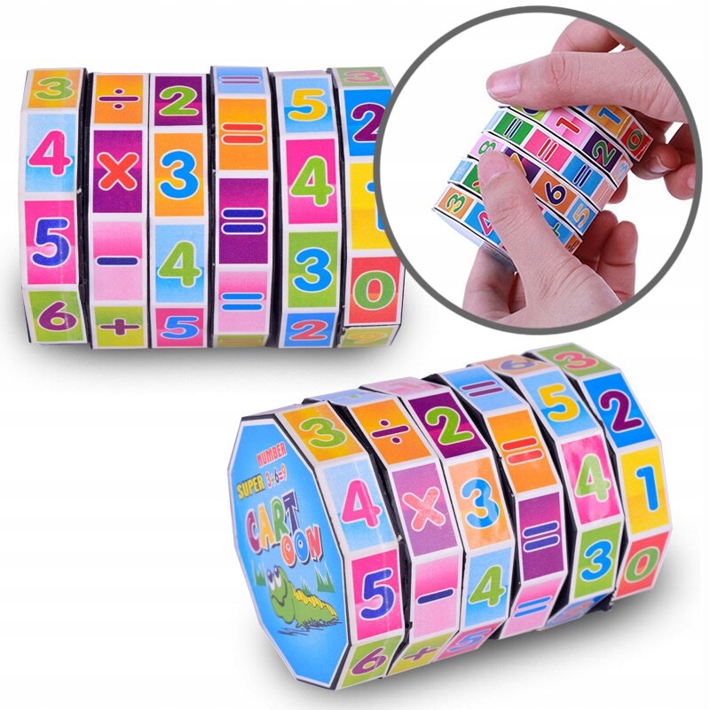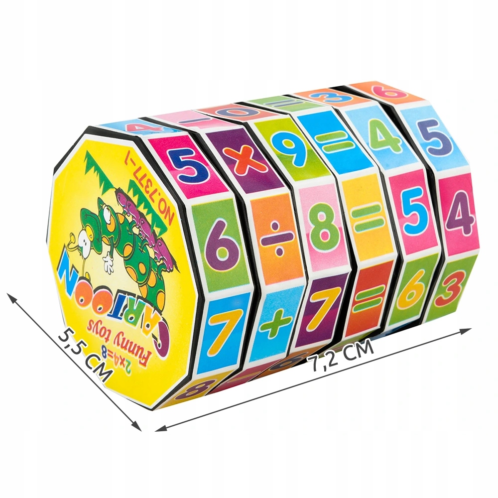 Ma za zadanie utrwalić proste działania matematyczne. Walec ma kompaktowe wymiary, dzięki czemu dziecko wszędzie może go zabrać. Walec przeznaczony dla dzieci znających już cyfry lub dla tych co chcą się ich nauczyć.