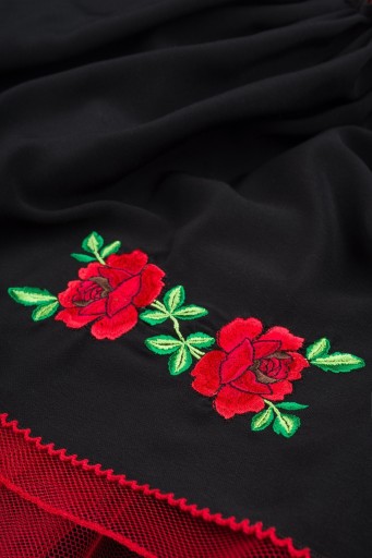 Ласкаво просимо на наш аукціон! Її тема – чорна спідниця, вишита трояндами. Зсередини підкладка оброблена тюлем. Якісний гумовий ремінь з додатковою шнурівкою. Ідеальне поєднання елегантності та народного стилю