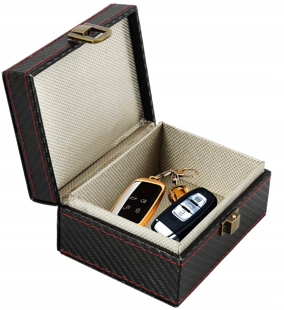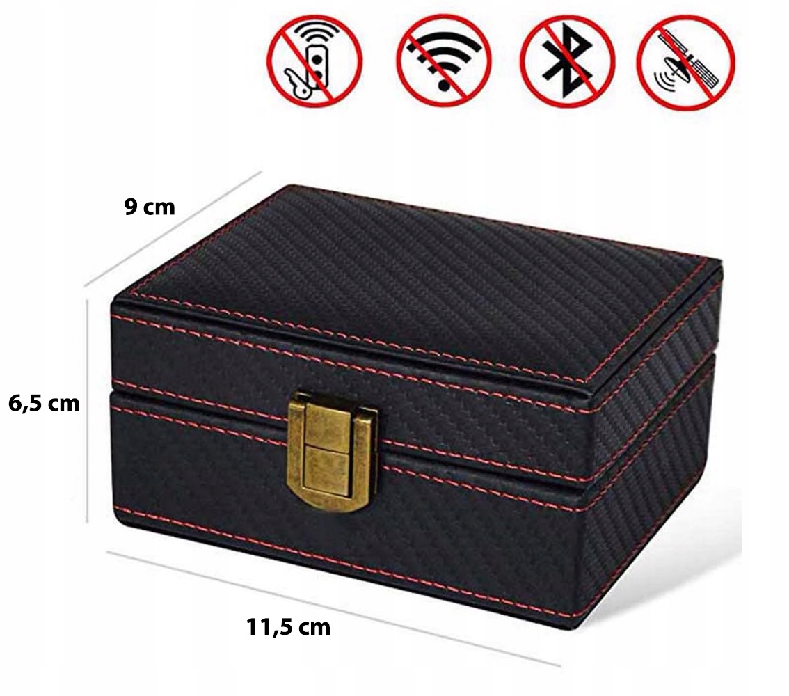 Wystarczy umieścić te przedmioty w pudełku. Dzięki temu są chronione w jednym miejscu, wiesz gdzie się znajdują, łatwo po nie sięgasz i odkładasz po wejściu do domu. Dzięki specjalnemu materiałowi wykorzystanemu w pudełku sygnał nie jest emitowany poza skrzynkę i nie może zostać przechwycony. Pudełko zabezpiecza sygnał, a Ty śpisz spokojnie.