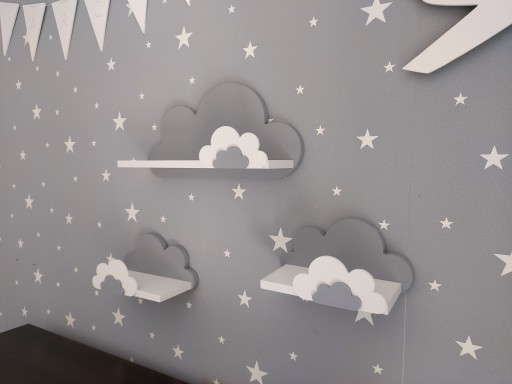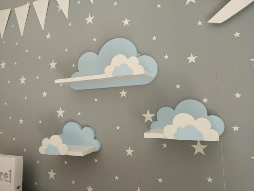 На кожній полиці цілих 3 хмаринки. І основна хмара, і передня хмара додатково мають колір на вибір.