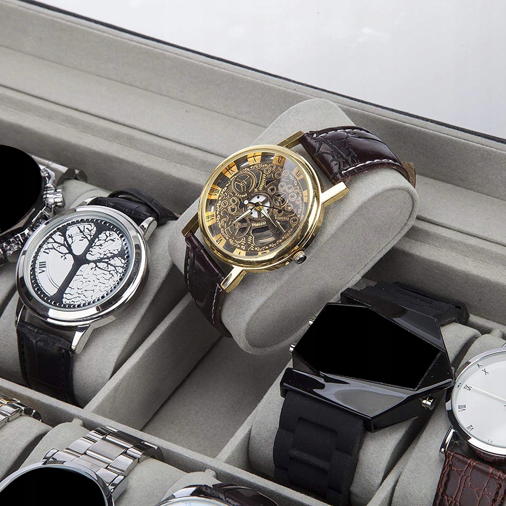 - Elegancki kuferek na 12 zegarków i biżuterię
