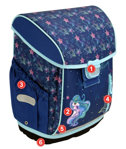 - Численні світловідбиваючі смуги, розміщені спереду, ззаду та з боків ранця, підвищують видимість, а отже, безпеку вашої дитини на дорозі