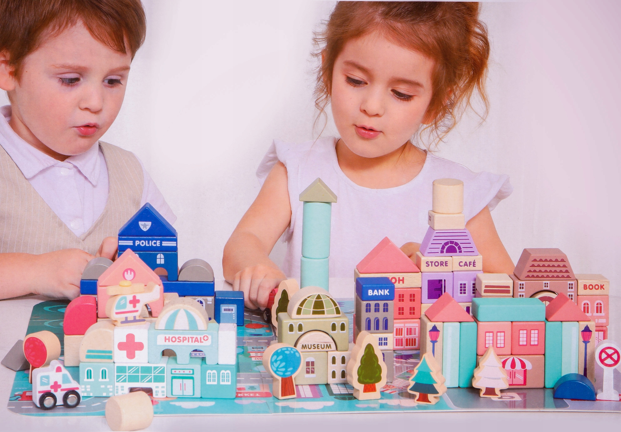 ДЕРЕВЯННЫЕ КОЛОДКИ, КОМПЛЕКТ, ДОРОГА, ГОРОД, 115 ЭЛЕМЕНТОВ