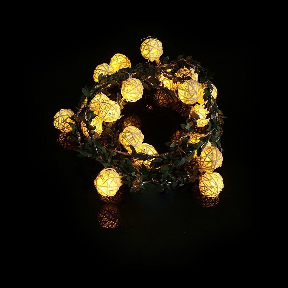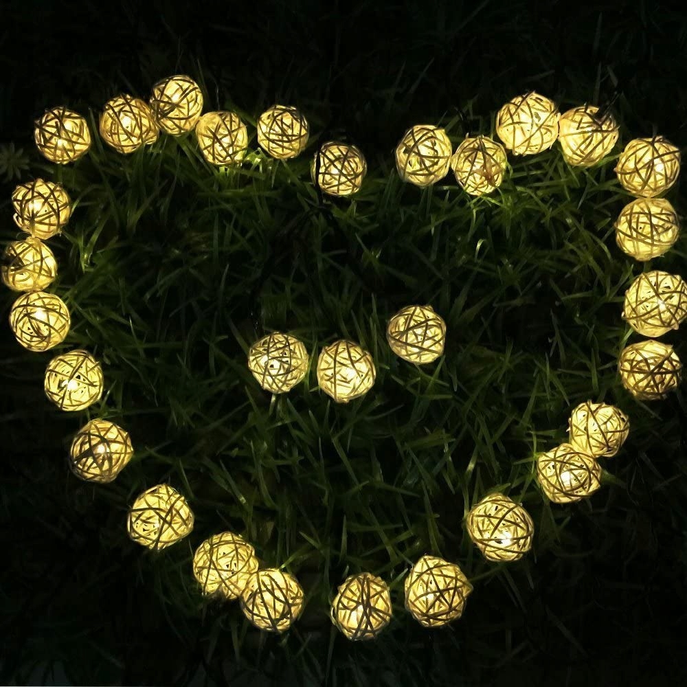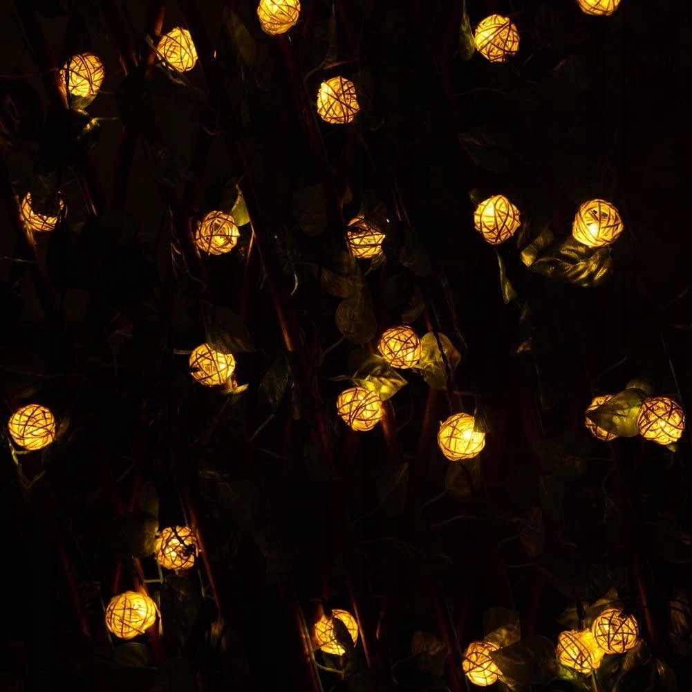 Wodoodporna 6.5 M 30 Led Piłka Rattanowa Lampki Solarne Ogrodu Ozdobne Oświetlenie (Ciepły Biały)