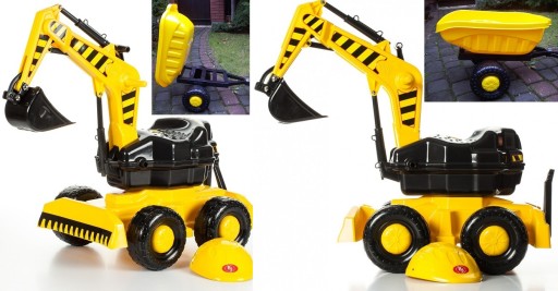 ДИТИНА МОЖЕ КЕРУВАТИ ПЕРЕСУВНИМ ЕКСКАВАТОРОМ, ОБЕРТАТИСЯ НА СИДІННІ, ЩО ОБЕРТАЄТЬСЯ, НА 360 ГРАДУСІВ, ПЕРЕМІЩАТИ ВСІЙ КОМПЛЕКТ ВПЕРЕД І НАЗАД, ШТУХНУВШИ НІЖКАМИ!