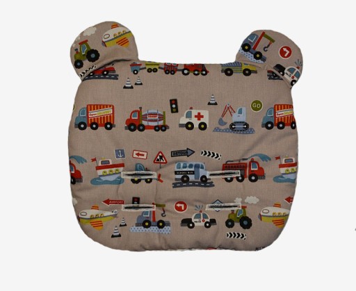 Подушка не завалюється за спину дитини. Має два ряди отворів для підтяжок. Він незамінний під час сну під час прогулянки. Його також можна помістити в коляски або автокрісла.