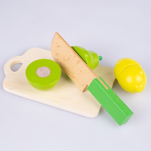 У набір також входить дерев'яна дошка і ріжучий ніж. Фрукти і овочі з'єднуються за допомогою липучки, при розрізанні липучка чинить опір і видає звук, як при справжньому різанні.