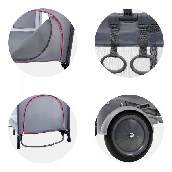 - 2 boki wykonane z siateczki, dające doskonała wentylację w ciepłe dni, umożliwiające dziecku kontakt z otoczeniem, zaś rodzicowi obserwację dziecka