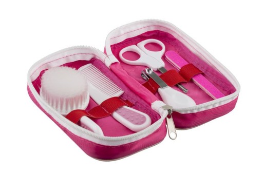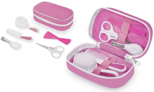 Набір для догляду за дитиною в зручній і практичній косметичці. Ножиці (з тонкими металевими лезами та закругленими краями) допоможуть безпечно обрізати маленькі нігті, а пилочка допоможе усунути нерівності нігтів і захистить дитину від подряпин. М'яка щітка і гребінець з неслизькою ручкою дозволять доглядати за головою малюка. Щоб звести до мінімуму ризик несподіваного ворушіння дитини, рекомендується стригти нігті під час сну. Виріб доступний у двох кольорах: блакитний та слонова кістка.