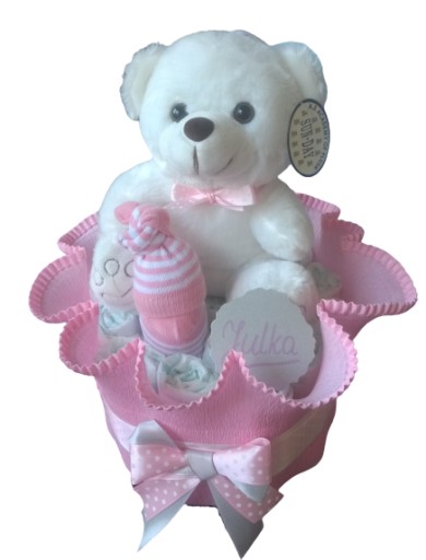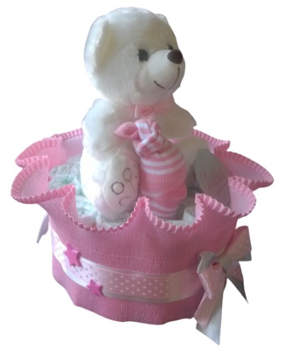 Торт з памперсів - ідеальне рішення - він принесе задоволення Малюкові і подарує задоволення Батькам. На цьому аукціоні ми пропонуємо милий торт з плюшевим ведмедиком і маленькими шкарпетками.