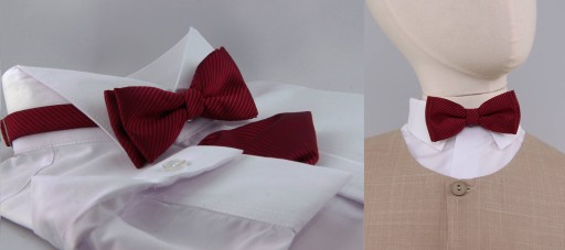 - Краватка-метелик і кишеньковий платок бордового кольору.